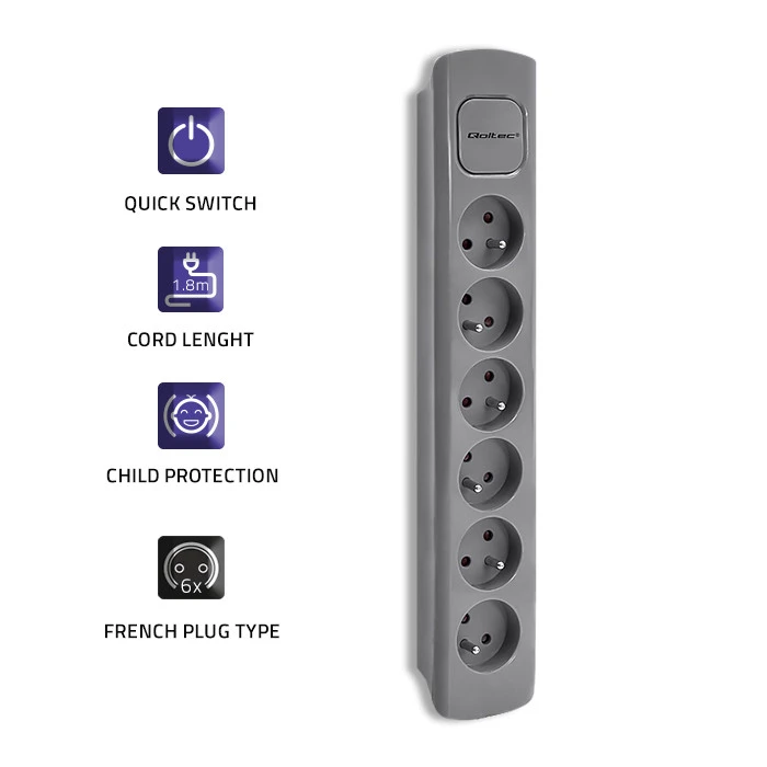Among our products, you'll find power strips with various socket numbers and cable lengths, ensuring you choose the right one for your needs. A practical feature is the built-in illuminated foot switch, Quick Switch. When it's lit, you can be sure your devices are receiving their dose of power. It's also convenient without the need to bend down. Placing the power strip on the floor allows easy toggling of the power supply with the button.