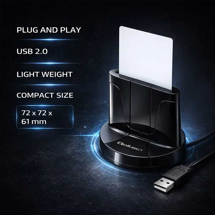 Do you run a transport or shipping company and want to provide your drivers with greater comfort and quick tachograph readings? Or perhaps you manage a large company where working time recording is a priority? If so, our chip card reader is the perfect solution for you and your employees. Are you involved in a different industry, such as a shop or café? Our device will help you handle loyalty cards, strengthening your relationship with customers. Regardless of the industry, the Qoltec chip card reader combines comfort and convenience for everyday use.