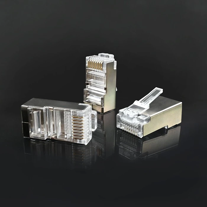 Push-through RJ45 FTP plugs with gold-plated contacts