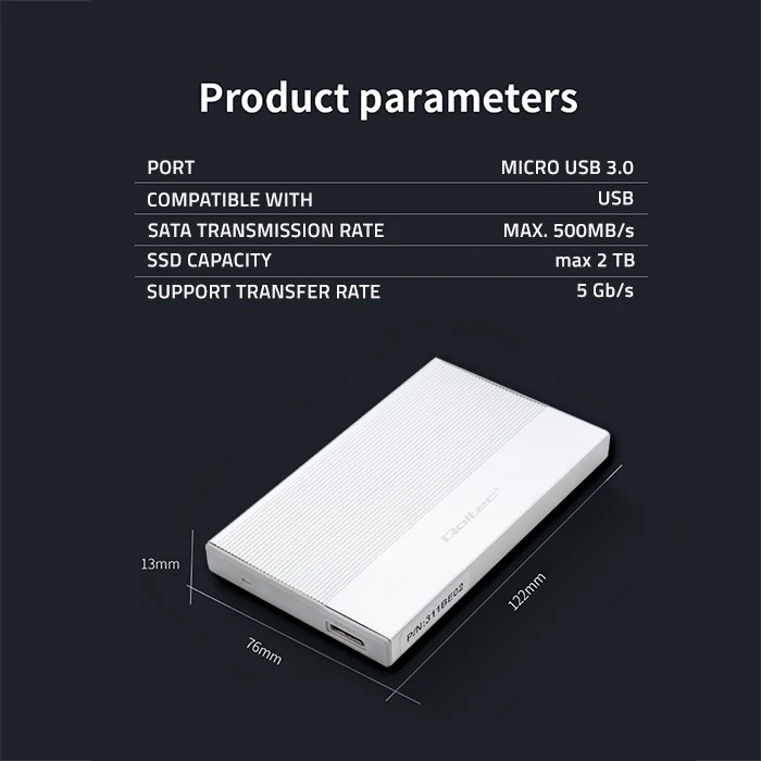 Discover a new quality of data storage with our aluminium enclosure for 2.5'' HDD and SSDs, which combines reliability, speed and wide compatibility. An ideal solution for those looking for mobile and easy-to-use data storage options, it is an interesting alternative, not only for those with documents or private files on disk, but also for small businesses wishing to archive their computer data without investing in other costly solutions.