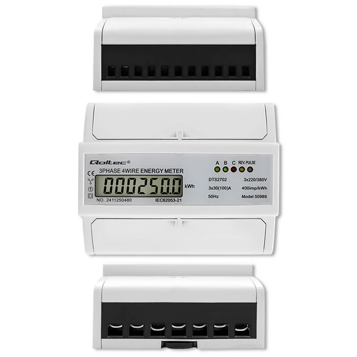 The Qoltec power consumption meter is not only an accurate tool for monitoring energy consumption, but also a compact and easy to use device. Thanks to its small size, installation is extremely easy and fast, making it ideal for both domestic and larger industrial applications. LCD display provides clear and accurate data on energy consumed, which allows for effective management of energy consumption and identification of potential savings. Counter can be used In domestic installations as well as in industrial plants.