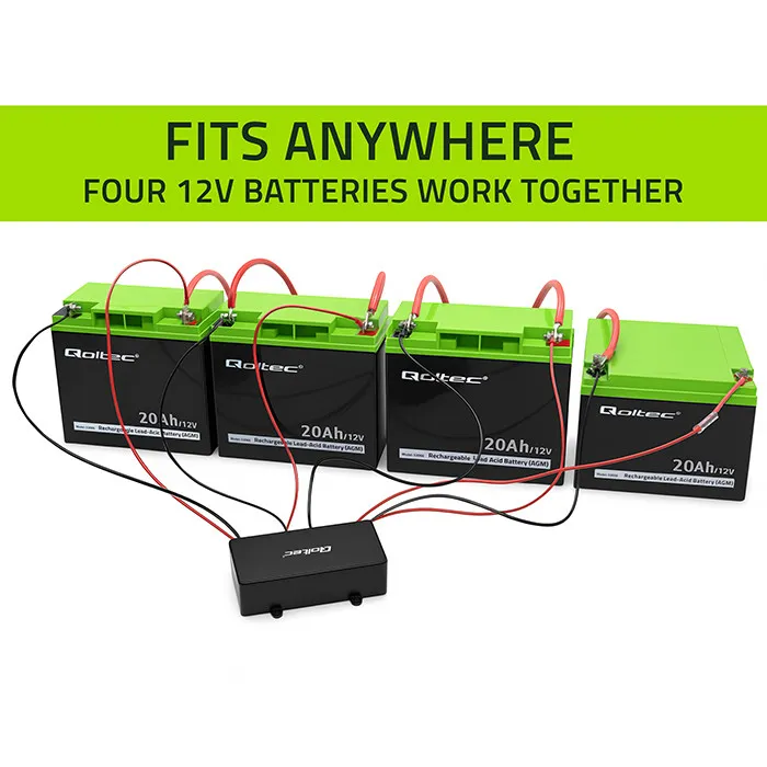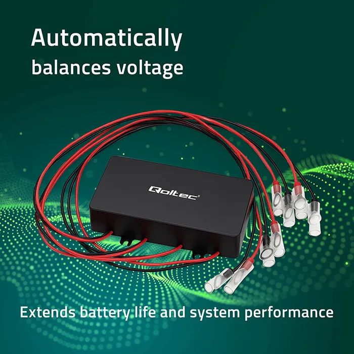 Before connecting the voltage equalizer Make sure that both batteries are fully charged, have the same type and identical capacity. The voltage difference between them should not exceed 0.2V. It is also extremely important that the batteries are properly connected in series, and the total voltage of the system is about 48V. Connecting the balancer is simple - just connect the black wire to the minus, red to the plus of the entire 48V set, and white to the point between the batteries – The rest will be taken care of by the balancer.
