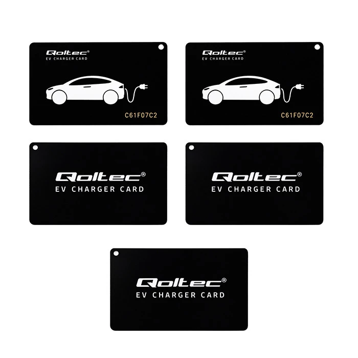 Set includes EV cards specially designed to work with Qoltec charging stations. In order to configure rates and charging parameters, it is necessary to set up one card as administrator, while the other cards are ready to be assigned to users. Thanks to this adding new cards is quick, simple and intuitive - requires no additional accessories or complex configuration. All cards are ready for immediate use, which allows the system to be expanded quickly and to handle more users efficiently.