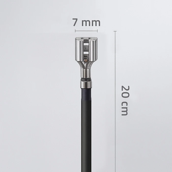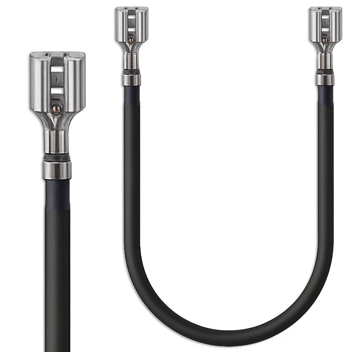 The 10AWG (approx. 6 mm²) battery cable with connectors has been designed for stable and safe power transmission. Both ends of the cable feature FASTON female connectors made of tinned steel,