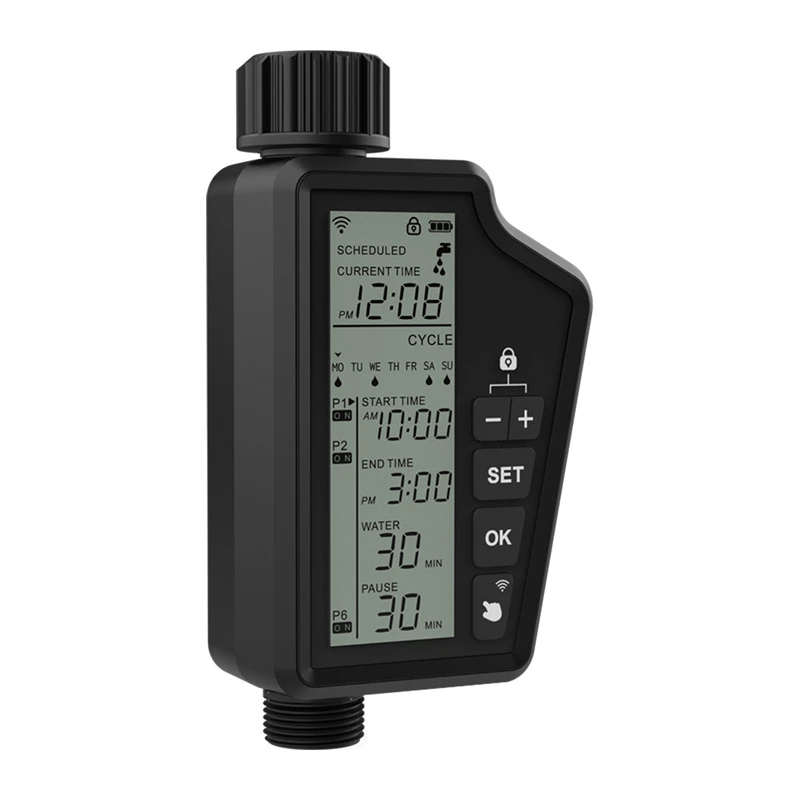The controller allows you to set up to 6 watering schedules with precise start and end times. This allows you to adjust the cycles according to the weather, time of day and type of plants. The device supports two modes of operation: automatic (according to the schedule) and manual - without interrupting the previously scheduled program.