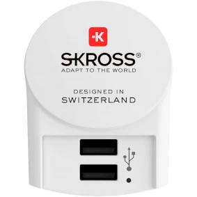This Euro USB Charger from SKROSS® conveniently ensures a full battery, charging up to 2 USB devices simultaneously.