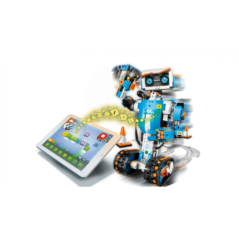 Täiusta oma LEGO meisterdamisoskusi selle loovust ja programmeerimisoskusi arendava LEGO BOOST tööriistakomplektiga. Ehita oma isiklik rääkiv robotsõber Vernie, kohanda seda, muuda selle käitumist ja kasuta komplektis olevat mängualust lõbusateks tegevusteks. Räägi Verniega ja näed näoilmeid, mis peegeldavad tema tuju. Vernie suudab oma suurtel roomikutel liikuda vahelduva kiirusega igas suunas, näha objekte ja värve, tajuda kaugust, haarata ning kanda tarvikuid, teha käežeste ja lennutada nooli oma õlale kinnitatud kahurist! Vernie tajub ka kokkupõrkeid ja reageerib nendele ning saab aru, kui sa ta üles tõstad.