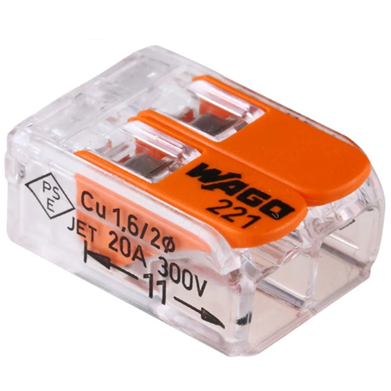Ühendusklemm 2-ne Wago, kangiga avatav ja suletav, läbipaist