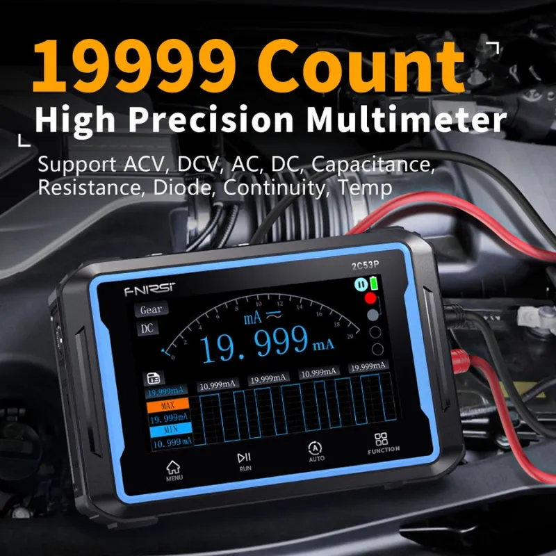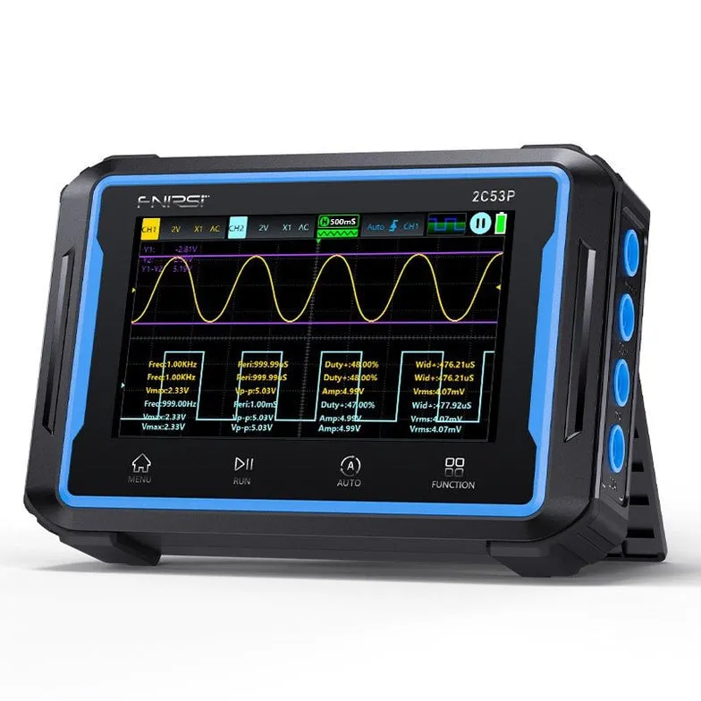 FNIRSI 2C53P on mitmekülgne 3-ühes kaasaskantav seade, mis integreerib kahekordse kanaliga tahvelarvuti ostsilloskoobi, True RMS multimeetri ja DDS-funktsioonigeneraatori. Mõeldud professionaalidele ja üliõpilastele, pakub see laiaulatuslikku funktsionaalsust erinevate elektrooniliste ülesannete jaoks.