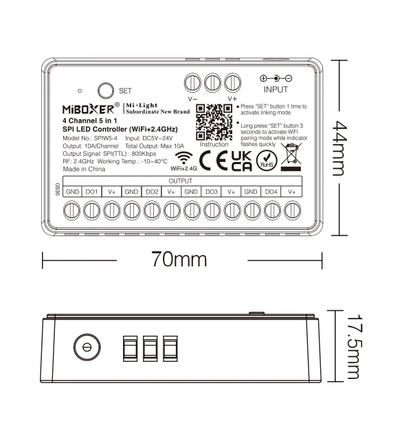 See täiustatud 4-kanaliline SPI LED-kontroller pakub ülimat paindlikkust digitaalsete LED-ribade juhtimiseks. Seade ühendab endas WiFi ja 2.4G traadita tehnoloogia, võimaldades mugavat haldust nii nutitelefoni Tuya Smart rakenduse kui ka pultide kaudu. Tänu neljale väljundkanalile saate juhtida kuni nelja erinevat tsooni täiesti iseseisvalt, muutes valguskujunduse loomise äärmiselt lihtsaks.