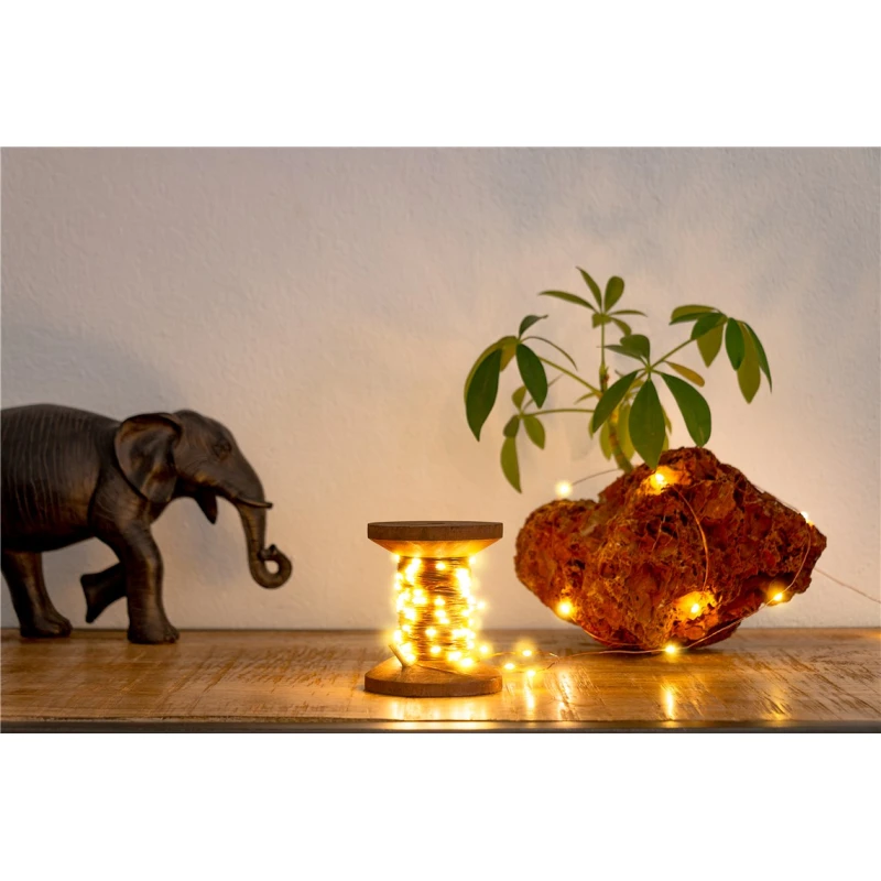 - mõõdud: pool 9,5 x 7,5 cm, 10 m juhtmest tuled LED-ide vahekaugusega 10 cm, materjalid: ehtne puit, vasktraat