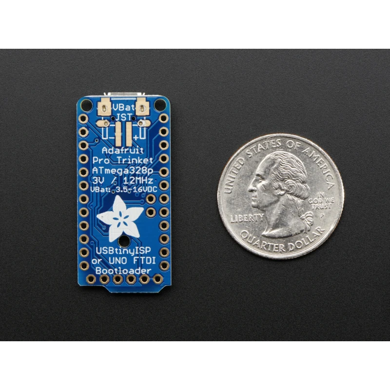 Trinket's got a big sister in town - the Pro Trinket 3V! Pro Trinket combines everything you love about Trinket with the familiarity of the core Arduino chip, the ATmega328. It's like an Arduino Pro Mini with more pins and USB tossed in.