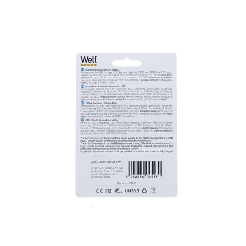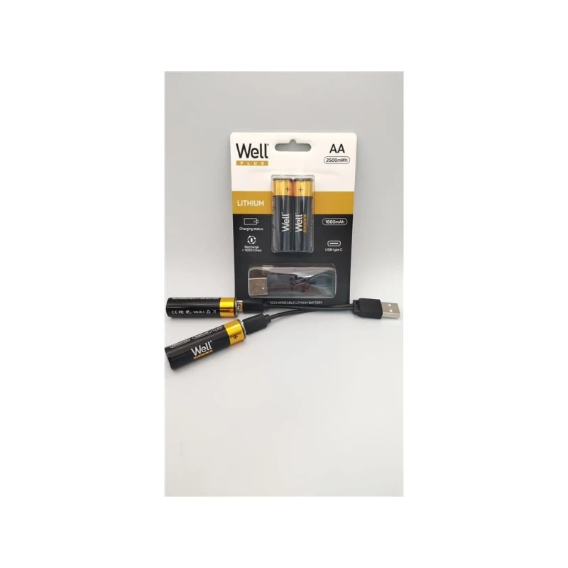 Akud AA Li-Ion 2tk 14500 1.5V 1660mAh 2.5Wh USB-C laadimine