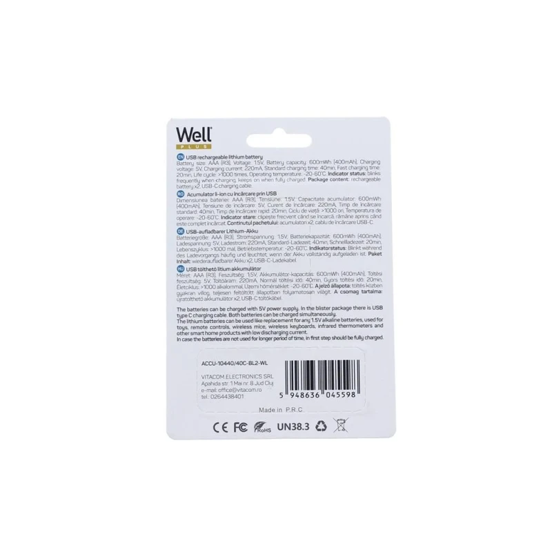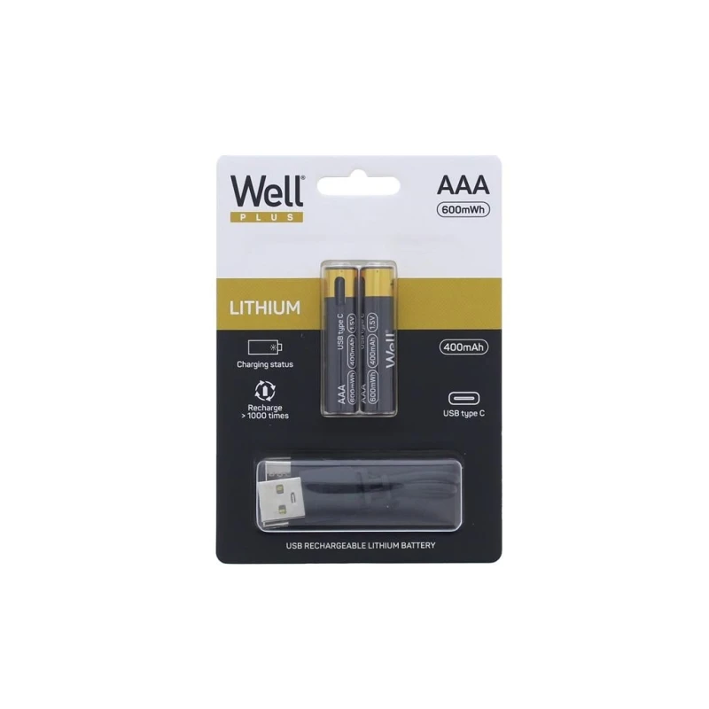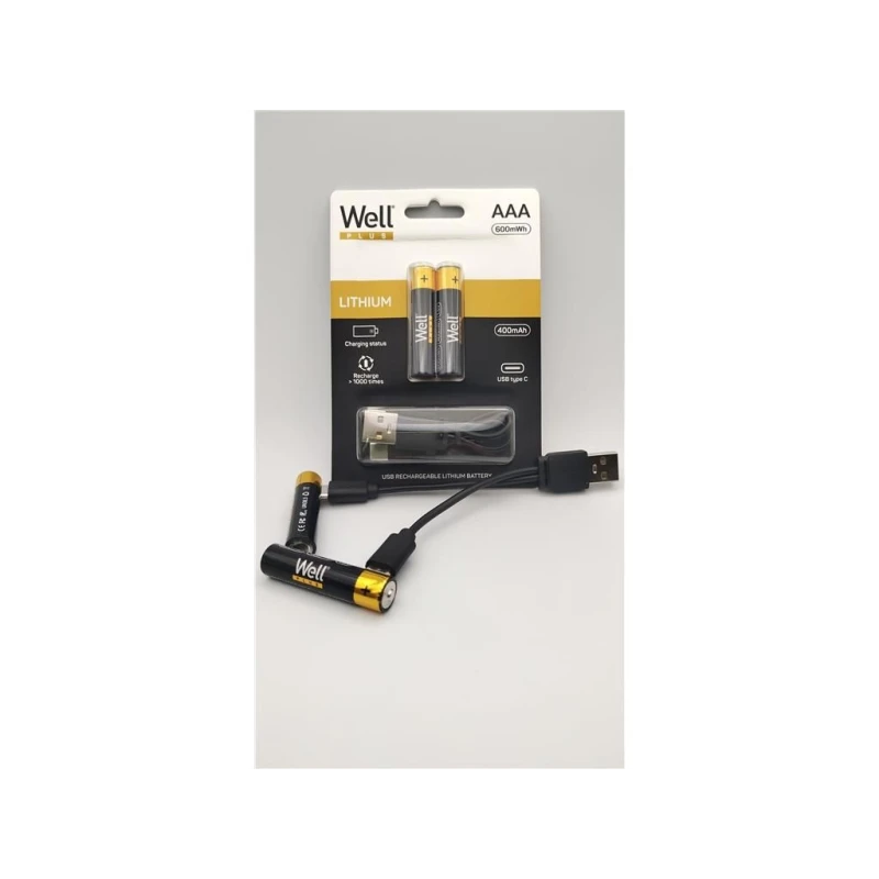 Akud AAA Li-Ion 2tk 10440 1.5V 400mAh 600mWh USB-C laadimine