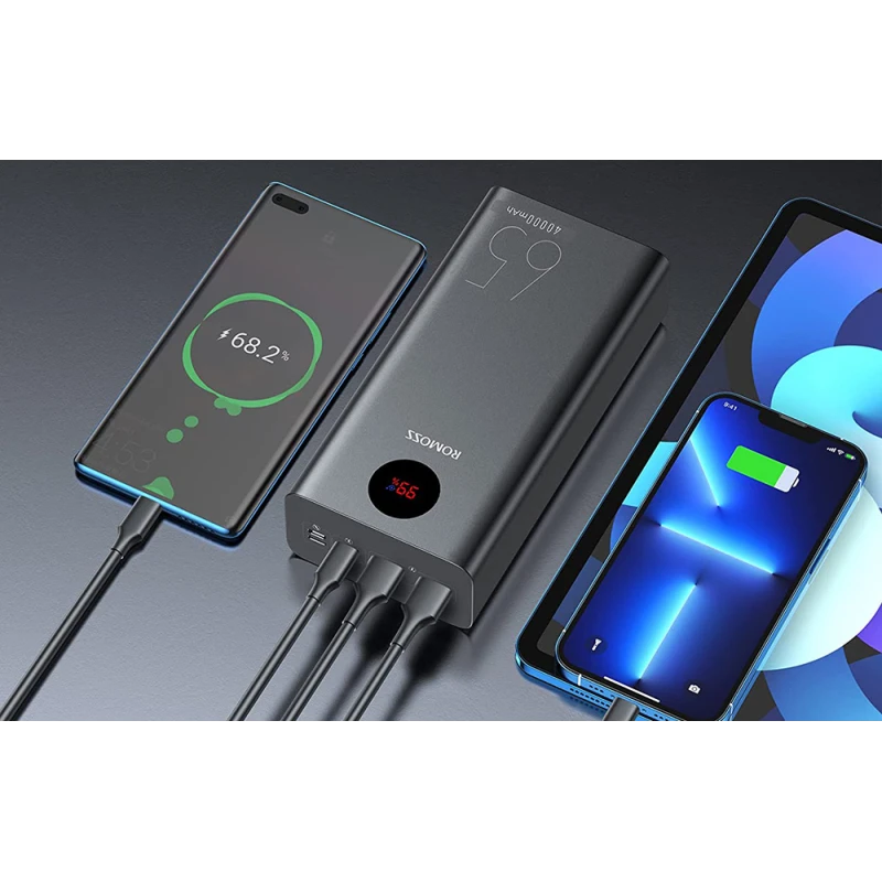 Romoss PEA40 Pro LED-ekraan kuvab seadme olekut, võimaldades kiirelt kontrollida aku taset. Samuti ilmub ekraanile ikoon, mis annab märku kiirlaadimisest.