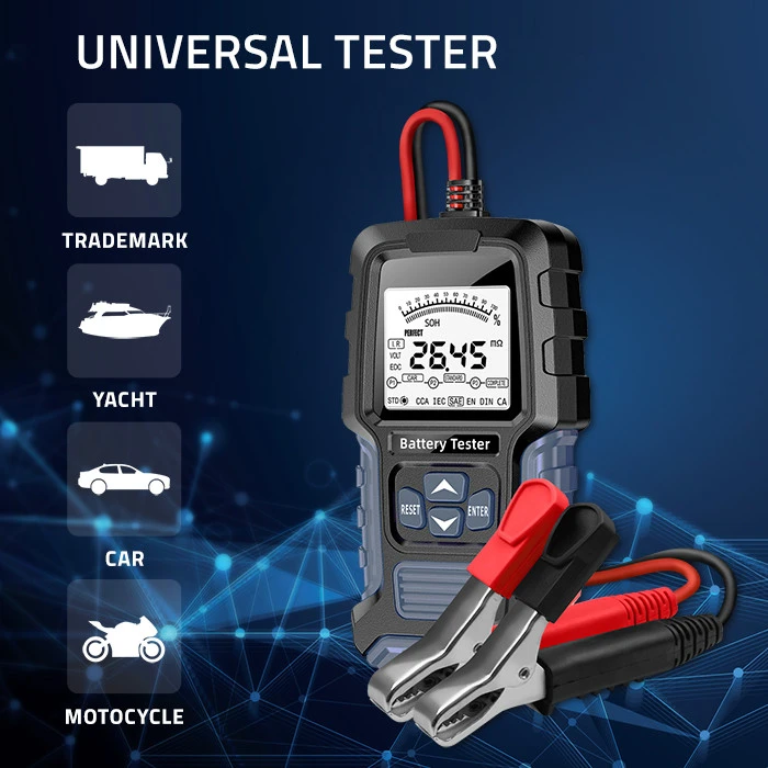 Seade ühildub paljude akutüüpidega, sealhulgas VRLA, GEL, AGM, EFB, STD ja standardsete vedelakudega. Testimine toimub vastavalt peamistele rahvusvahelistele standarditele, sealhulgas CA, CCA, IEC, SAE, EN ja DIN.