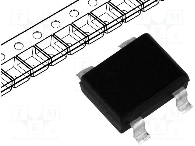 Kind of packagetapeKind of packagereelElectrical mountingSMTCaseSO-DILMax. forward impulse current65ALoad current2.3AMax. off-state voltage250VType of semiconductor componentsingle-phase bridge rectifierManufacturerDIOTEC SEMICONDUCTOR