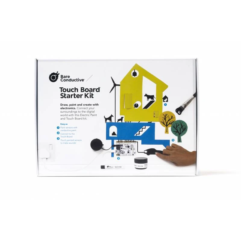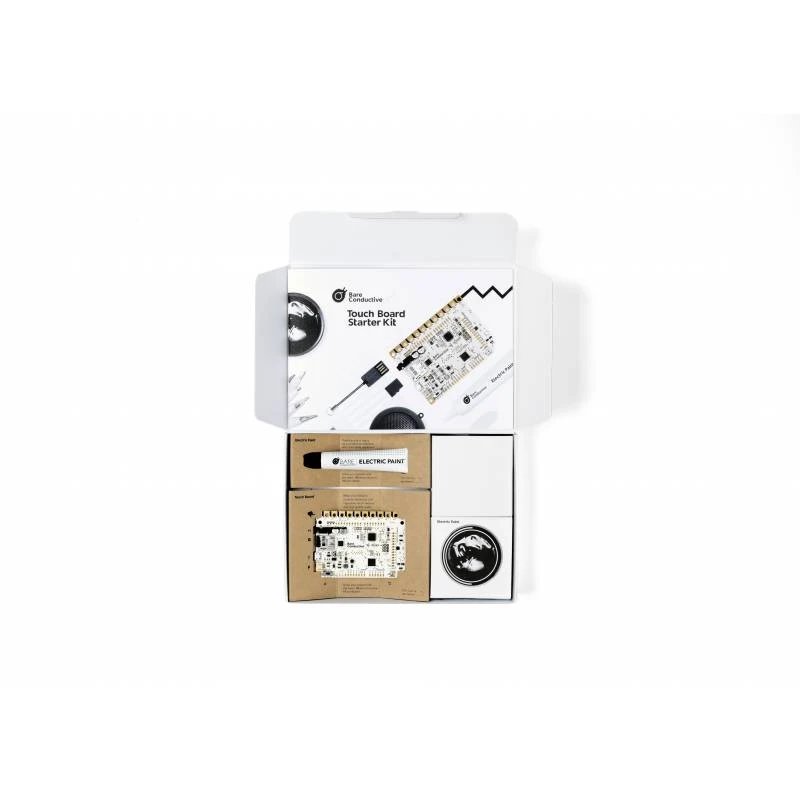 Alustuskomplekt Touch Board Starter Kit sisaldab kõike, mida vajate selleks, et muuta mistahes pind, objekt või ruum anduriks. Sellest komplektist leiate puuteplaadi Touch Board, elektrit juhtiva värvi Electric Paint, põhikomponendid ja üldse kõik, mida vajate interaktiivsete elektroonikaprojektide loomise alustamiseks.
