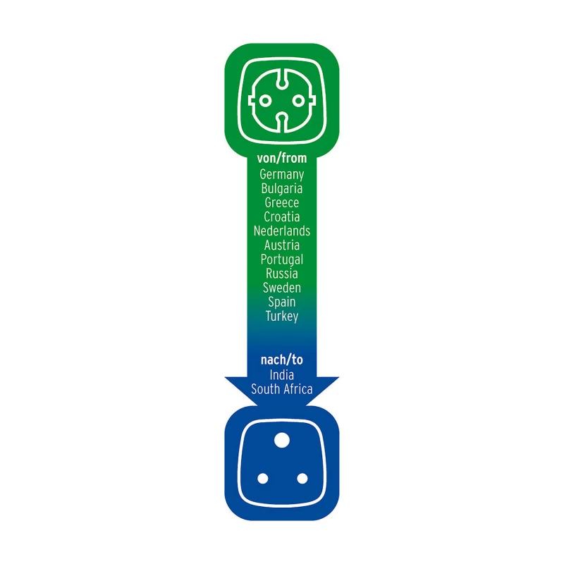 Adapter LAV (Lõuna-Aafrika Vabariik), India, Sri lanka pistik -> EUR pesa, maandusega