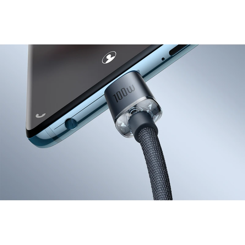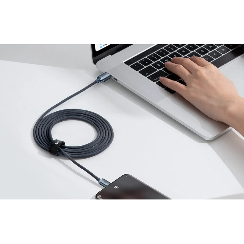 Kiirlaadimis- ja andmeedastuskaabel. Tänu universaalsele USB-C väljundile saate telefoni või sülearvuti hõlpsalt laadida. Maksimaalne võimsus 100 W võimaldab koheselt täiendada oma seadme energiat või sama kiiret andmeedastust.