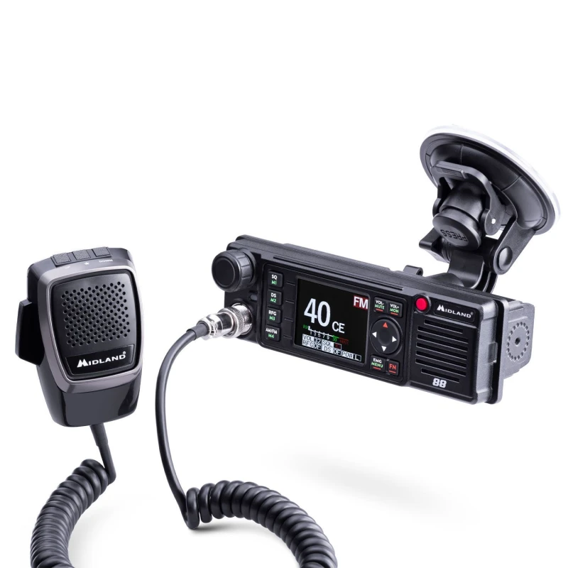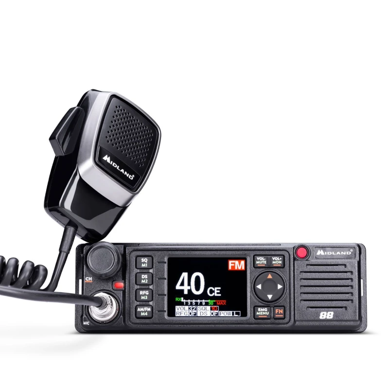 Midland 88 CB mobiilne raadio M88 on kõige mitmekülgsem CB-raadio: ühildub kõigi DIN-kappidega. See on teie lahutamatu kaaslane: veoautodes, maastikuautodes ja matkaautodes.