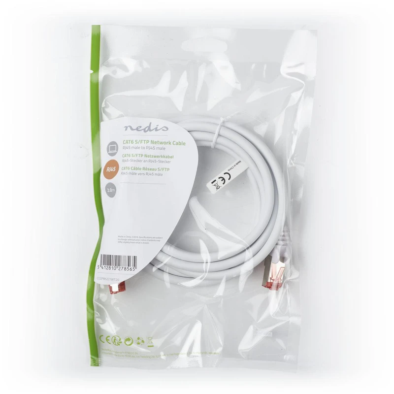 CAT6 Patch Võrgukaabel 2m, S/FTP gigabit LSZH PiMF, varjestatud, Valge