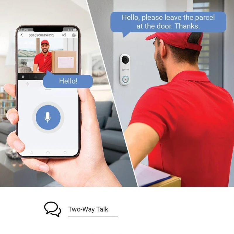 Kahesuunaline vestlus. Kui EZVIZi rakendus teavitab teid külalisest ukse ees, saate kohe näha ja rääkida inimesega, kus iganes te ka ei oleksite.