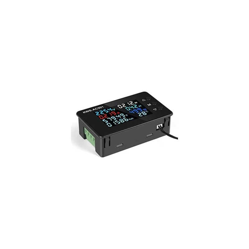 See paneelile paigaldatav multifunktsionaalne mõõteriist mõõdab 8 erinevat suurust ja kuvab need selgel värvilisel ekraanil. See mõõdab pinget, voolu, võimsust, sagedust, võimsustegurit, aega ja ümbritsevat temperatuuri välise anduri kaudu.