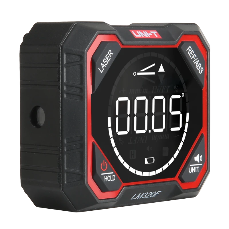 UNI-T LM320F on professionaalne digitaalne inklinomeeter, mis on paigutatud kompaktsesse ja vastupidavasse alumiiniumisulamist korpusesse ning on mõeldud ülitäpseteks nurga mõõtmisteks täies 4×90° vahemikus. See mitmekülgne tööriist ühendab digitaalse täpsuse integreeritud laserfunktsiooniga, et lihtsustada märgistus- ja nivelleerimistöid.