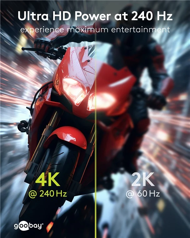 Põhiomadused - Ultra HD resolutsioon: Võimeline edastama videosignaale kuni 8K @ 144 Hz või 4K @ 240 Hz, tagades sujuva ja viivitusvaba pildi.