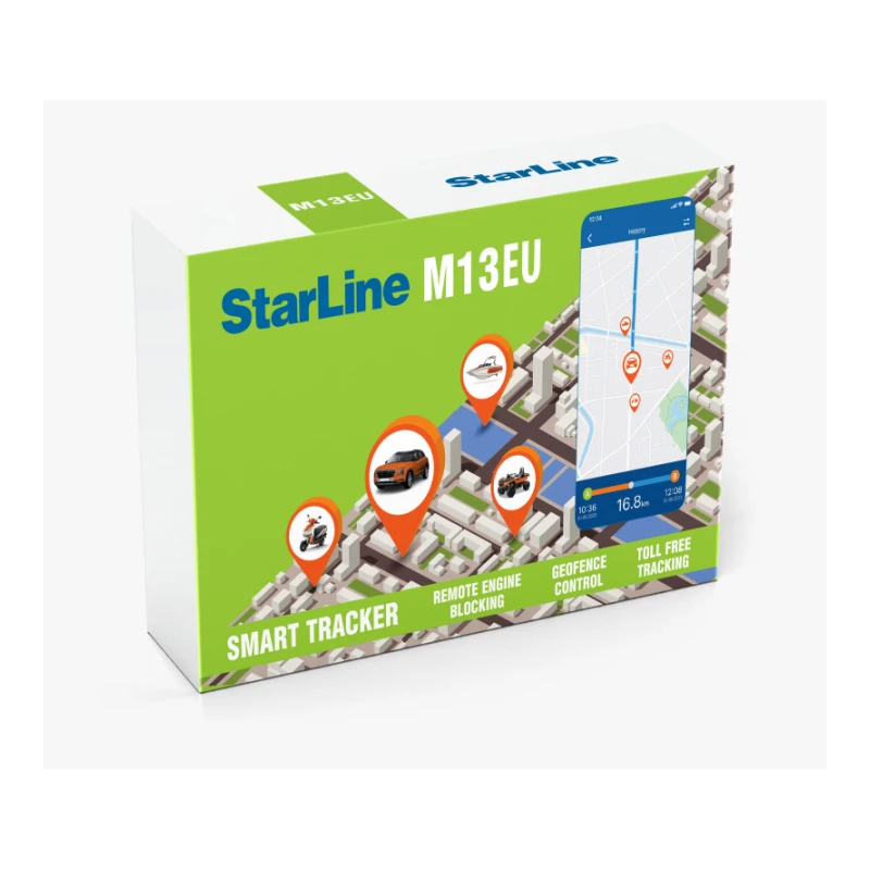 Simple Entry level GPS-Glonass tracker, GSM, free web tracking on starline.online and "StarLine 2" Mobile App, 9-90V, IP65 housing, Engine Blocking output.