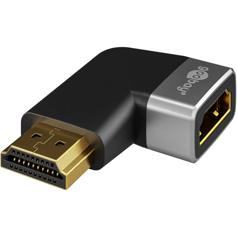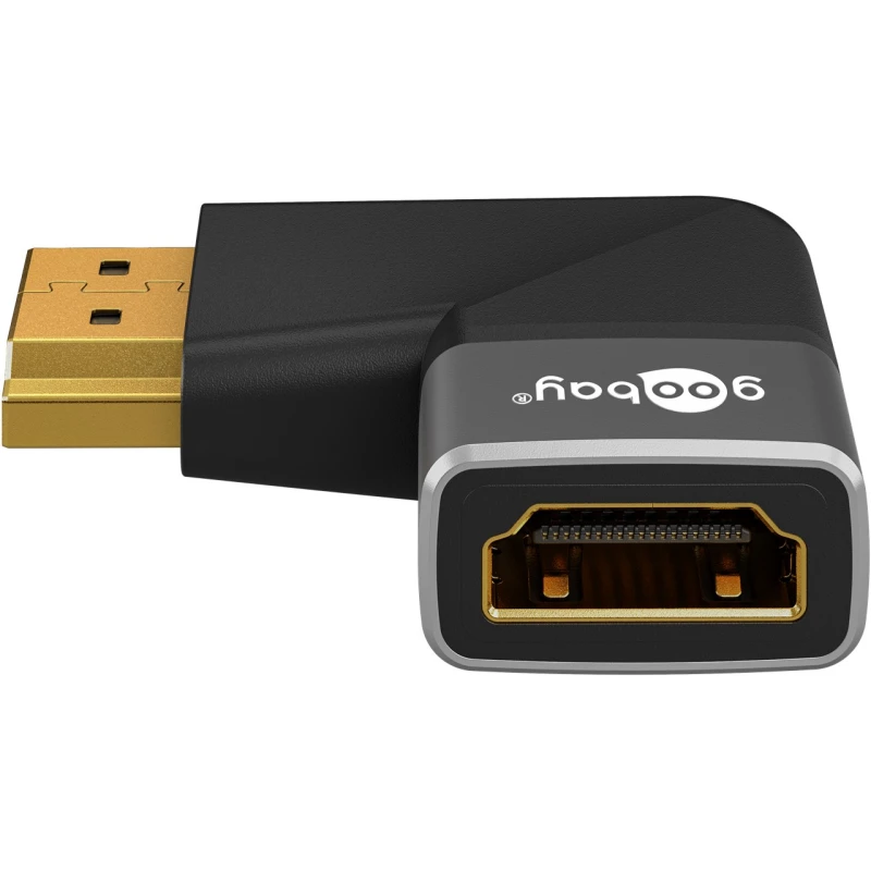 Goobay Plus HDMI™ adapter, nurga all 270°, on õhuke ja stiilne lahendus piiratud ruumiga seadmetele. Selle kõrge kvaliteediga alumiiniumist tugevdatud disain võimaldab ühendusi tagada isegi kitsastes kohtades, näiteks teleri, Blu-ray mängija või mängukonsooli tagaosas. Adapter toetab kuni 8K @ 60 Hz ja 4K @ 120 Hz eraldusvõimega pilti ning tagab andmeedastuskiiruse kuni 48 Gbit/s. Samuti toetab see heli- ja videosedastust CEC, HEC, ARC ja eARC funktsioonidega, pakkudes kasutusmugavust ja suurepärast pildikvaliteeti. Toetab 8K UHD-d, 3D-d 4K UHD-ga ja HDR-i (kõrge dünaamiline ulatus), mis tagab suurepärase ja kontrastse pildikvaliteedi ja HDCP 2.2 turbesüsteemi tuge.