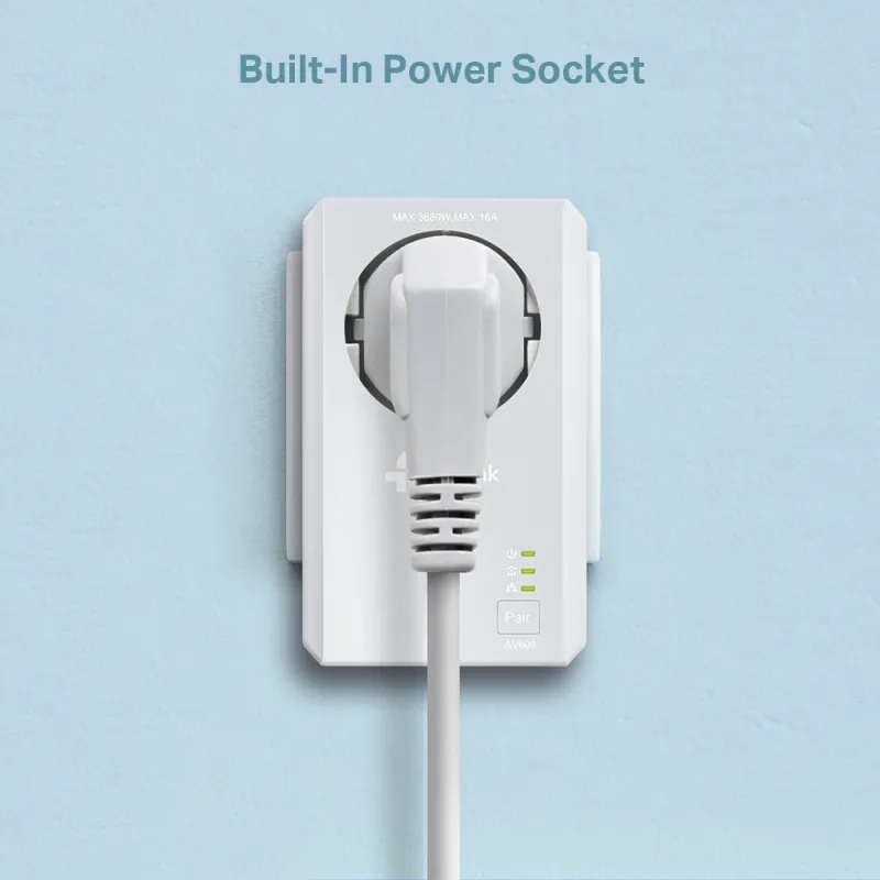 Komplektil on ka integreeritud pistikupesa, mis tagab, et te ei kaota väärtuslikku seinakontakti. See komplekt sisaldab mudeleid TL-WPA4220 ja TL-PA4020P.