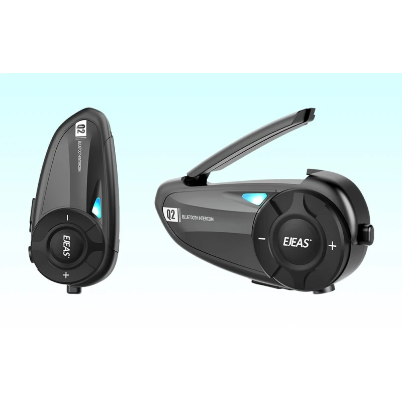 EJEAS Q2 on uuenduslik mootorratta kiivri külge kinnitatav sidesüsteem, mis võimaldab kahel sõitjal reaalajas suhelda kuni 800 meetri kaugusel. See on varustatud 40 mm kõlaritega, FM-raadioga ja IP65 veekindlusega, pakkudes kõrgekvaliteedilist heli ja usaldusväärsust igasugustes ilmastikutingimustes. Seade toetab automaatset kõnede vastuvõttu, nutikaid häälkäske ja omab 750mAh akut, mis tagab pika tööaja. Kasutajad saavad nautida 24 tundi sisekõnet, 260 tundi ooterežiimis ja kuni 30 tundi muusika taasesitust. Telefoniga ühendatav Bluetooth kaudu.