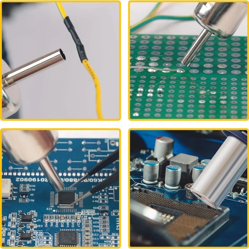 - 2-ühes funktsionaalsus: Ühendab jootekolvi ja kuumaõhupüstoli põhjalikeks ümbertöötlemisülesanneteks.