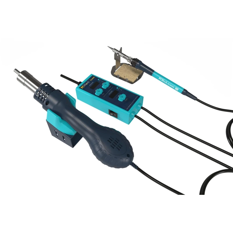 PCWork PCW09C on kompaktne 2-ühes SMD ümbertöötlemisjaam, mis integreerib jootekolvi ja kuumaõhupüstoli mitmekülgseks elektroonikatööks. Põhiomadused