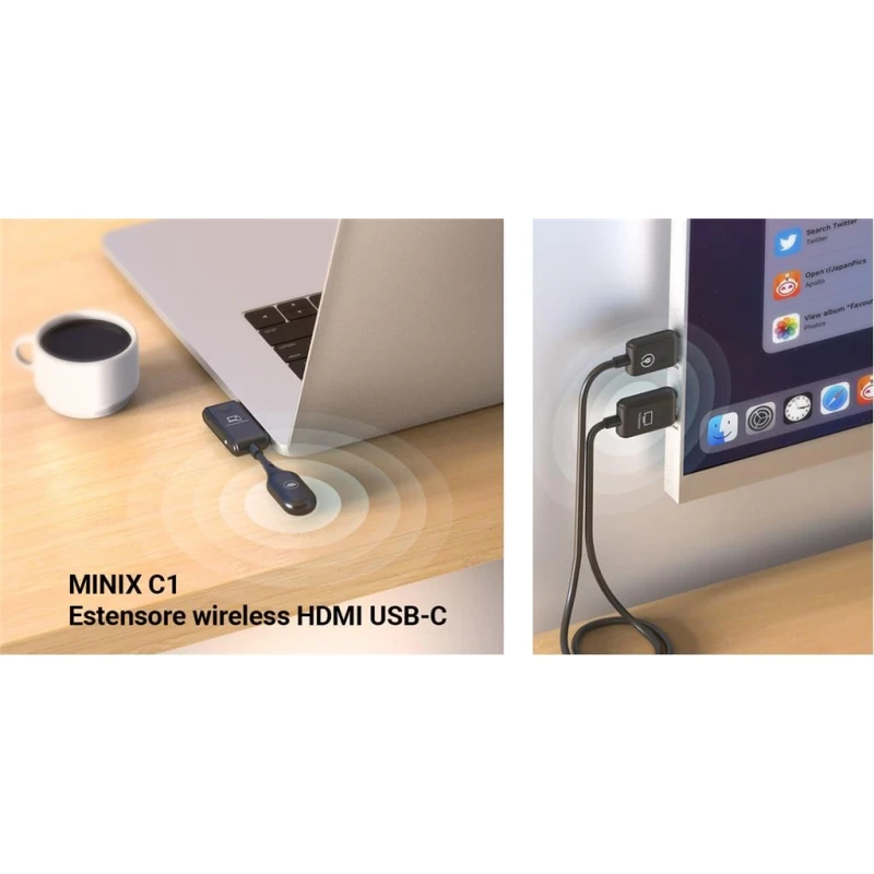MINIX C1 on juhtmevaba HDMI saatja ja vastuvõtja süsteem, mis on loodud lihtsaks, kaablivabaks ekraani peegeldamiseks või laiendamiseks.
