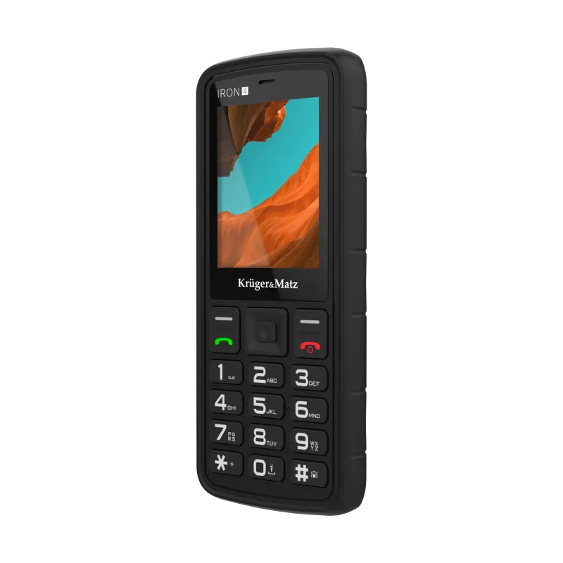 Kruger&Matz IRON 4 (KM0467) on kompaktne, vastupidav mobiiltelefon, mis on loodud usaldusväärseks toimimiseks nõudlikes keskkondades. Selle tugevdatud konstruktsioon pakub erakordset vastupidavust löökidele, tolmule ja pritsmetele.
