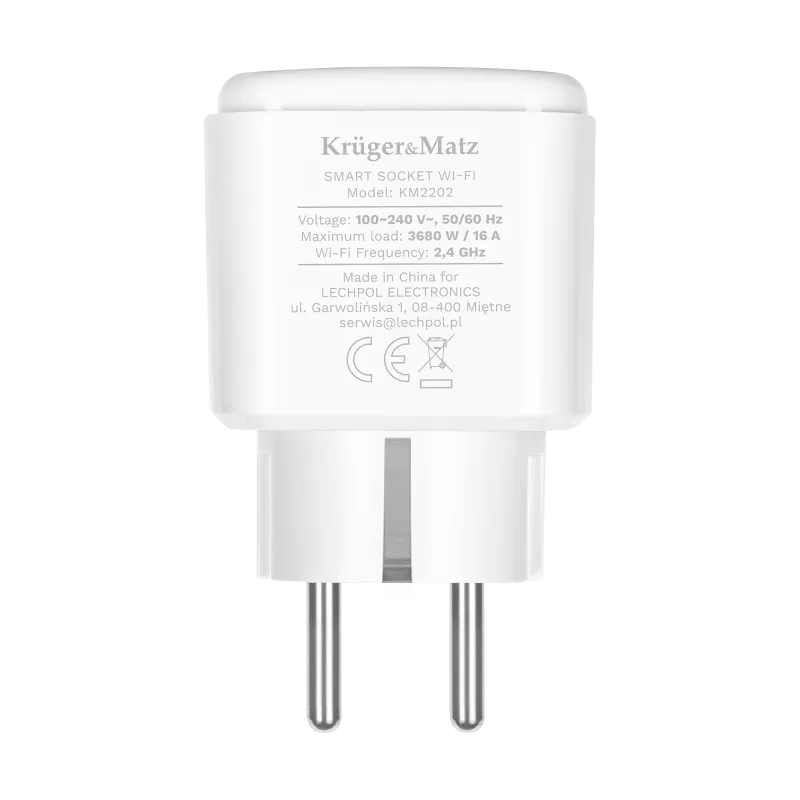 Kruger&Matz Connect P4 (KM2202-W) on kompaktne nutipistik, mis on loodud kodumasinate kaugjuhtimiseks TuyaSmart mobiilirakenduse kaudu. See võimaldab kasutajatel seadmeid juhtida mis tahes asukohast, pakkudes mugavat lahendust koduautomaatika ja energiahalduse jaoks.