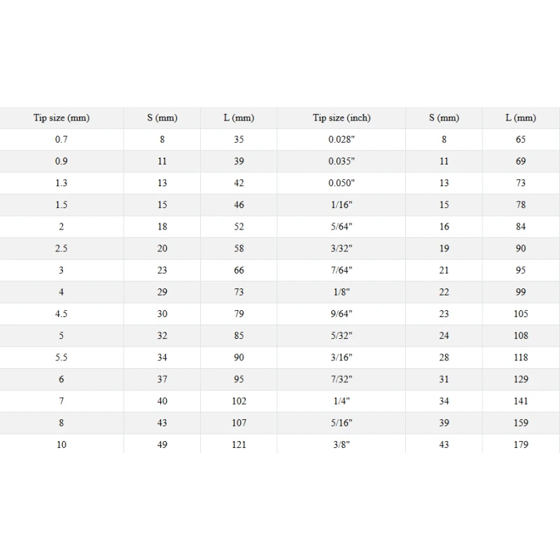 Mõõtmed (toll): 0.028", 0.035", 0.050", 1/16", 5/64", 3/32", 7/64", 1/8", 9/64", 5/32", 3/16", 7/32", 1/4", 5/16", 3/8" (15 tk)