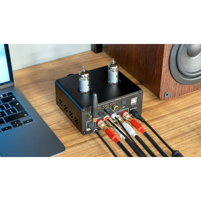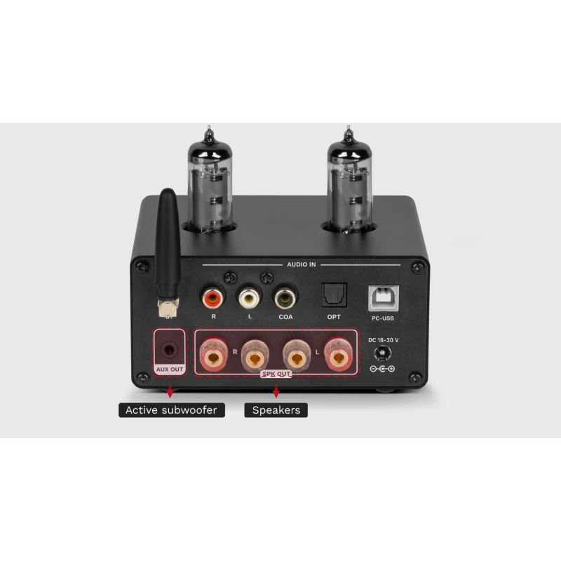 Seade on varustatud RCA, koaksiaal- ja optiliste sisenditega, samuti USB-B pordiga.
