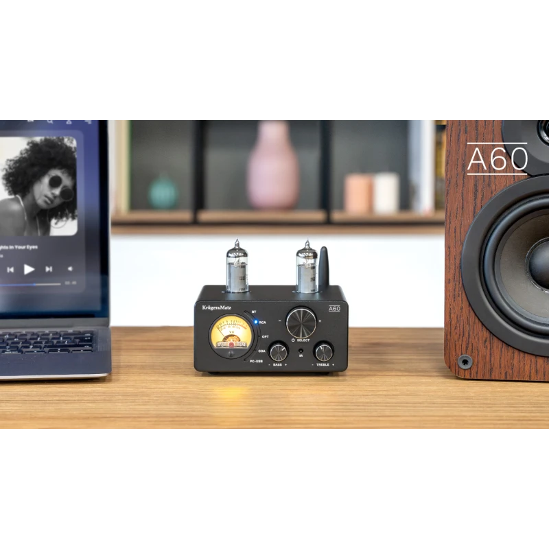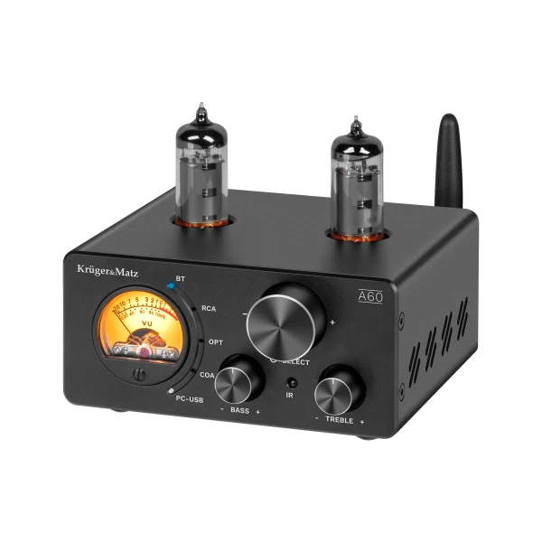 Kruger&Matz A60 stereolamp võimendi. Täiustage oma muusikaelamust Kruger&Matz A60 kahekanalilise võimendiga. Kompaktset musta korpust tõstab suurepäraselt esile lampide merevaigukollane kuma. Tänu sellele kombinatsioonile sobib võimendi ideaalselt teie interjööri.