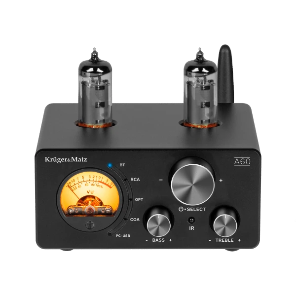 Kruger&Matz stereovõimendit, mis töötab võimsusega 2x100, eristab 6K4 torude kasutamine, mis genereerivad sooja ja loomuliku heli suure sügavuse ja selgusega.