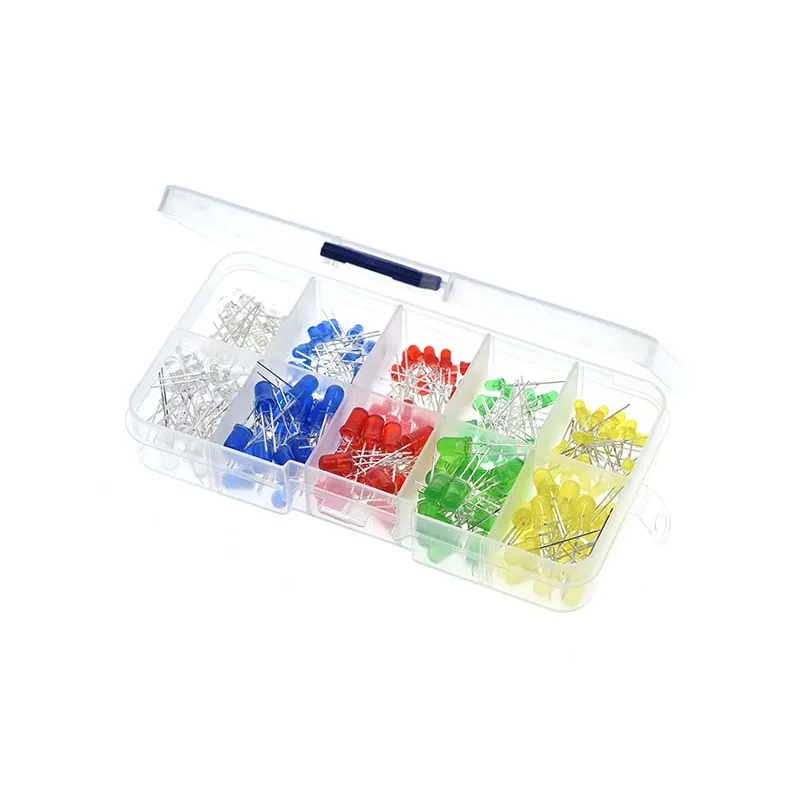 Komplekt sisaldab viit põhivärvi, igaüht 20 tükki: punane, roheline, sinine, kollane ja valge. Kokku on 100 standardse 3mm läbimõõduga LED-dioodi. Kogu komplekti kaal koos hoiukarbiga on 65 grammi.