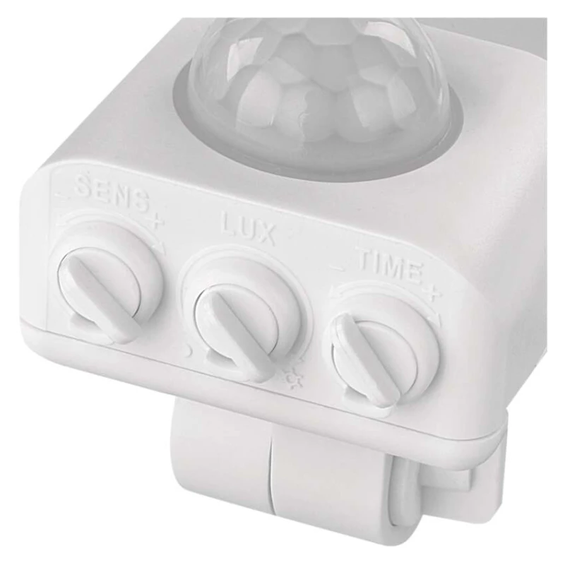 - Integreeritud PIR-liikumisandur tuvastusulatusega kuni 8 meetrit ning reguleeritava aja ja tundlikkuse seadistustega.