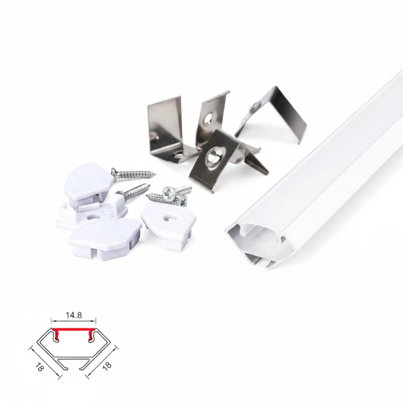 Spetsiaalne nurgaprofiil on mõeldud paigaldamiseks seina-, lae- või mööblinurkadesse, võimaldades valgustada kahte pinda korraga. See on ideaalne lahendus nii arhitektuurseks aktsentvalgustuseks kui ka funktsionaalseks tööpinna valgustamiseks köögis või garderoobis. Kuna tegemist on täiskomplektiga, on see kohe valmis paigaldamiseks, hoides kokku aega eraldiseisvate komponentide valimisel.