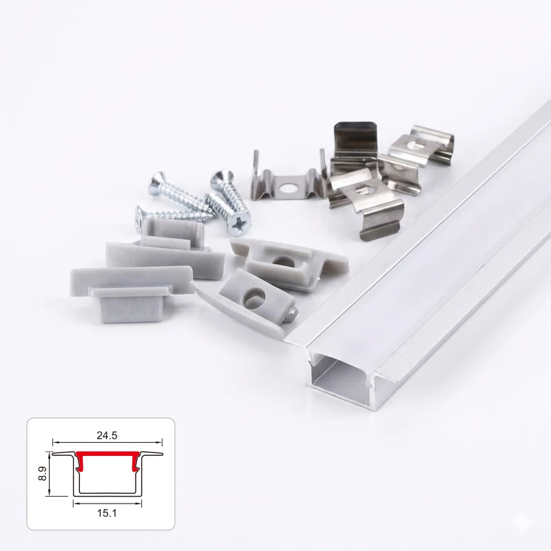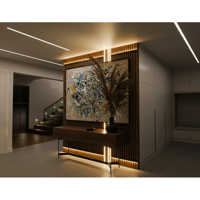 Alumiiniumist LED-profiili komplekt on loodud pakkuma esteetilist ja professionaalset viimistlust igale valgustusprojektile. See süvistatav lahendus võimaldab luua ühtlase ja katkematu valgusjoone, mis sulandub diskreetselt seinte, lagede või mööblikonstruktsioonidega. Tänu süvistatavale paigaldusele jääb profiil ise peaaegu märkamatuks, jättes fookusesse vaid puhta valgusmängu.