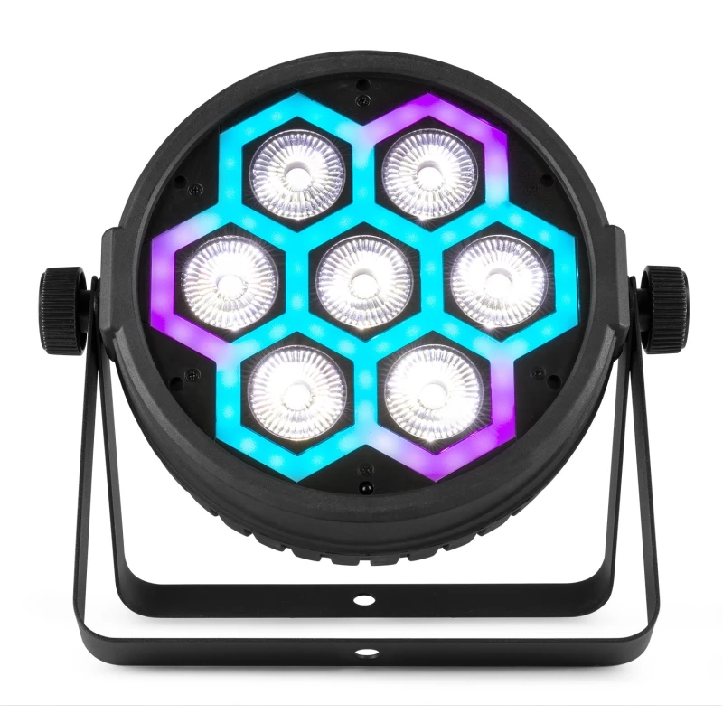 * 7x 10W 4-ühes LED-id ja 60x RGB SMD LED-id