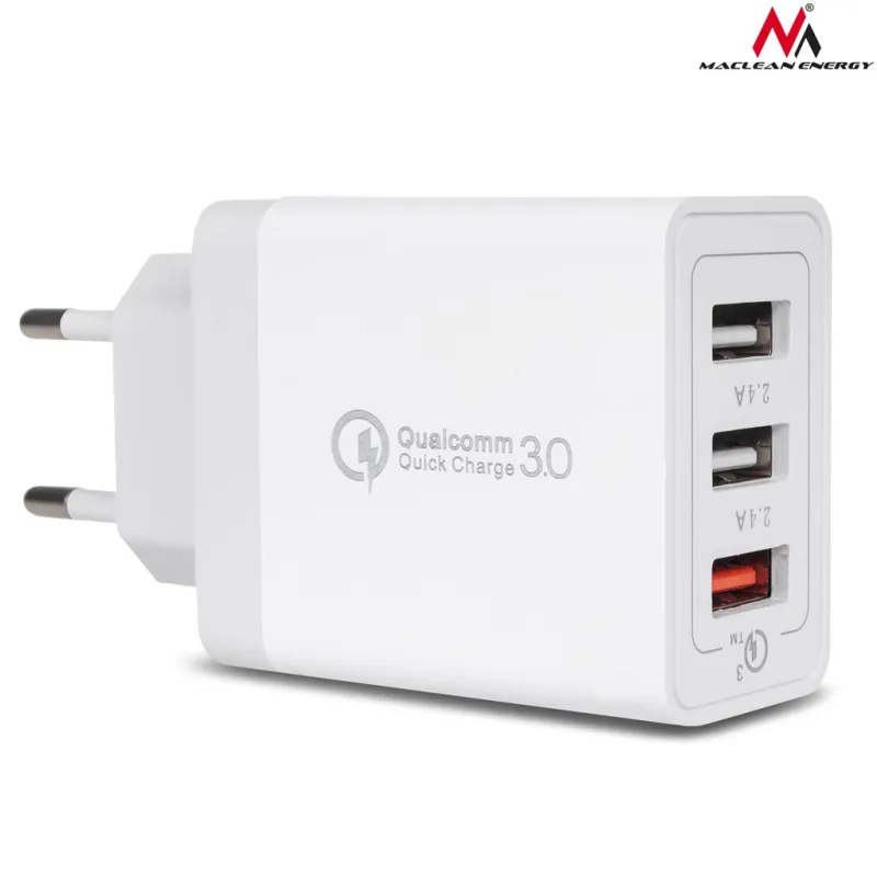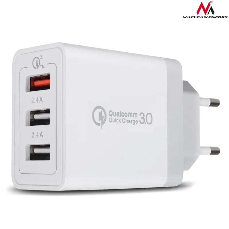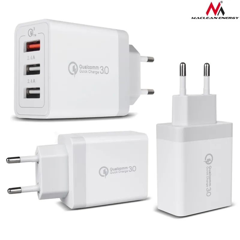 Adapter 3xUSB-A QC3.0 12V/1.5A, 5V/2x2.4A, valge, plug-in