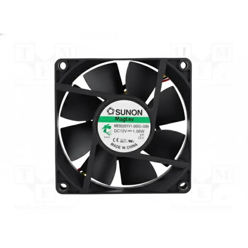 See on SUNONi toodetud kvaliteetne aksiaalne alalisvooluventilaator, mudel ME80201V1-000U-G99. Mõõtmetega 80x80x20mm on see kompaktne, kuid võimas, pakkudes õhuvoolu 61.16m³/h, hoides samal ajal mürataset mõõdukal 38dBA tasemel.